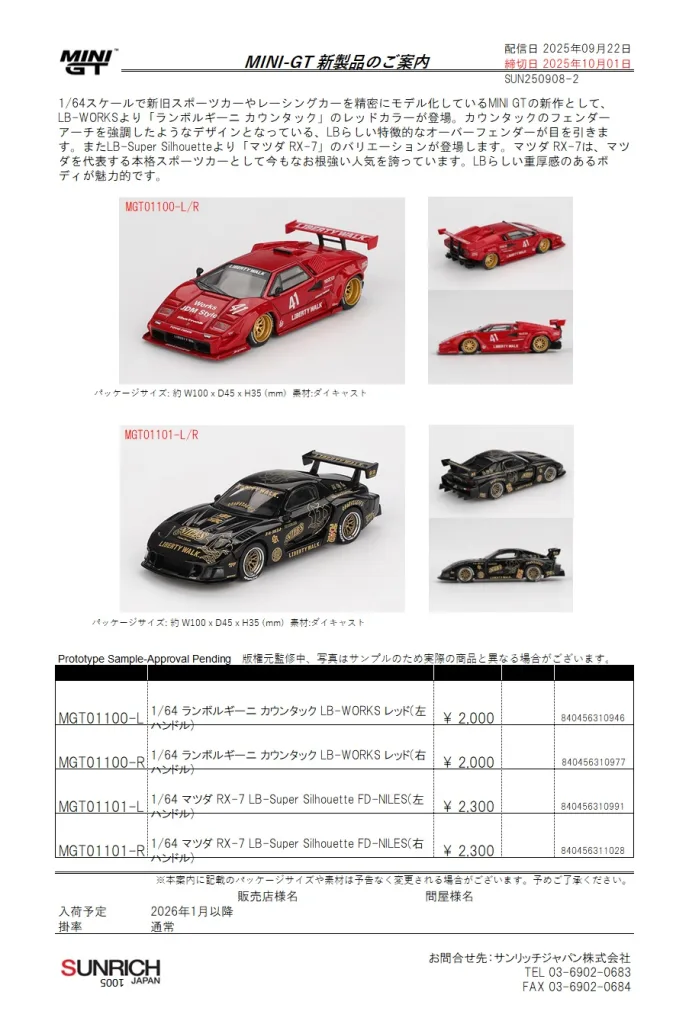 ◎MGT01100-L/R ランボルギーニ・カウンタック LB-WORKS (左ハンドル/右ハンドル)レッド