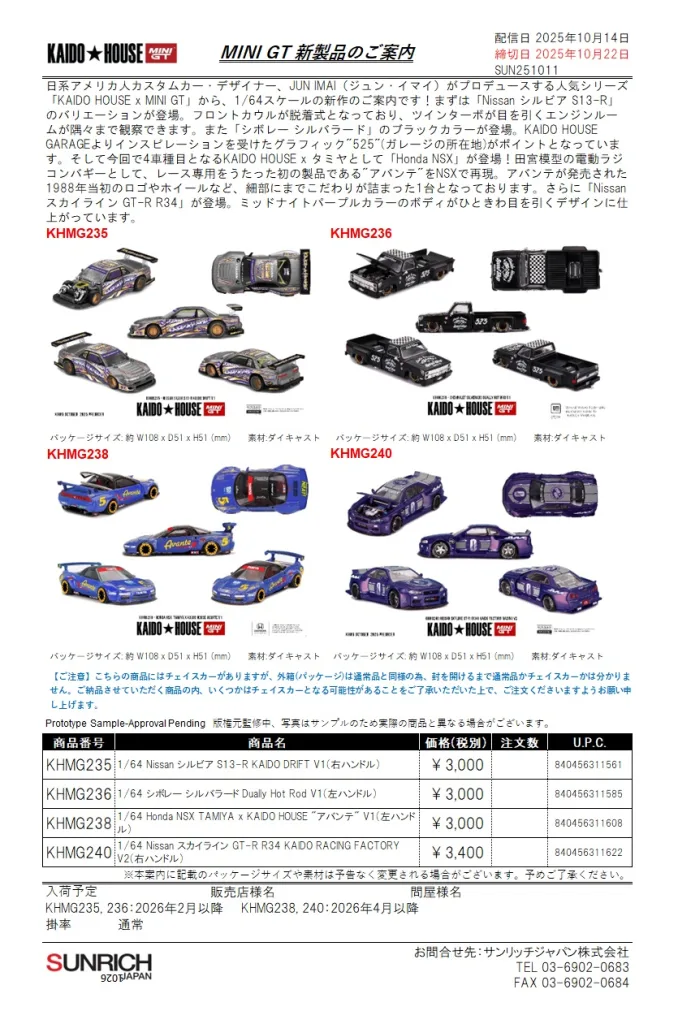 KAIDO★HOUSEからは下記の4車種になります。
