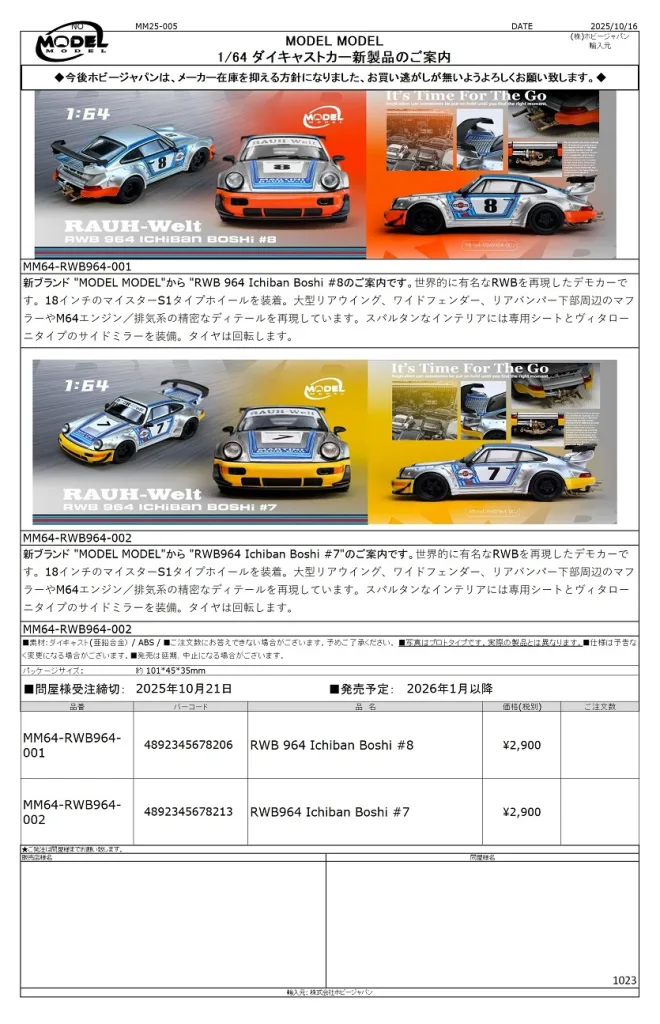 ◎MM64-RWB964-001 RWB964 Ichiban Boshi #8