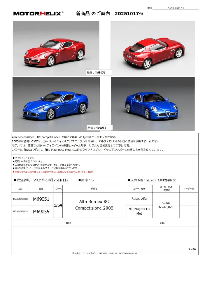MOTORHELIXからは下記の4車種になります。