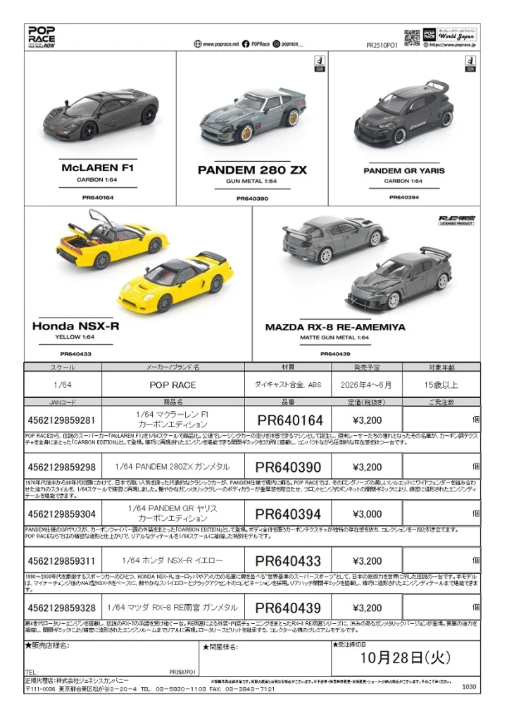 POP RACEからは下記の6車種になります。