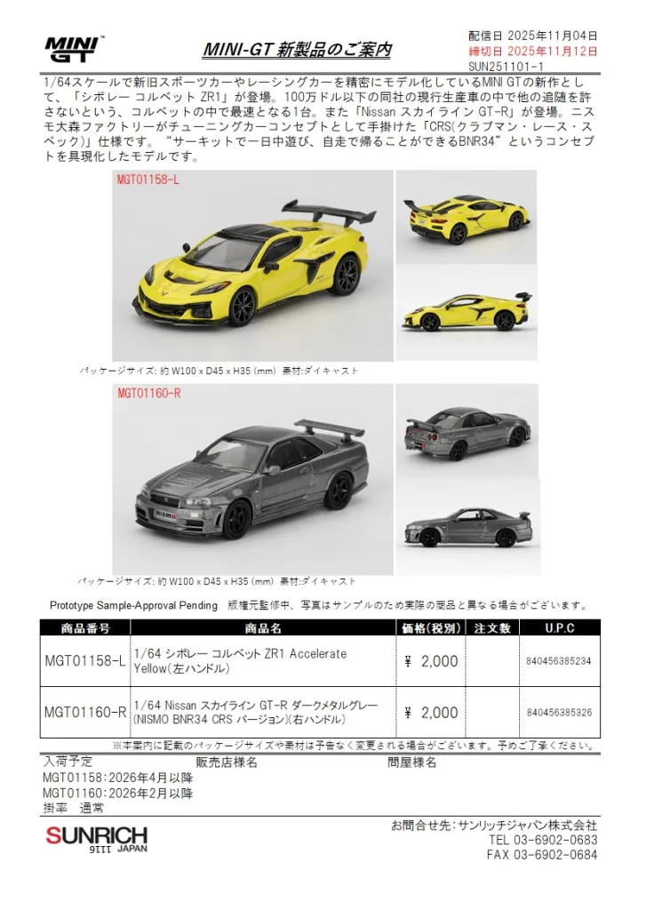 ◎MGT01158-L 1/64 シボレー・コルベット ZR1 Accelerate Yellow 左ハンドル
