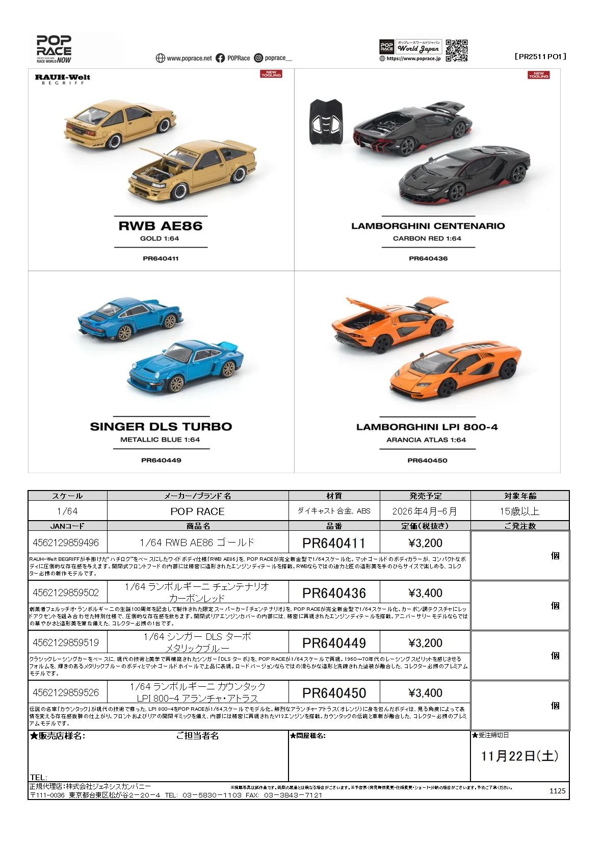POP RACEから1/64ミニカーのご予約受付を開始致しました。