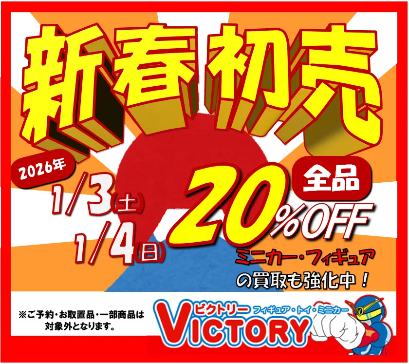 旧年中は格別のご高配を賜り厚く御礼申し上げます。 本年もより一層のサービス向上に努めて皆様にご満足いただけるよう精進いたします。 変わらぬご愛顧を賜りますようお願い申し上げます。 1月3日(土)・4日(日)は新春初売り全品20%OFFセール1を行いますので、ぜひこの機会に足をお運びください。 皆様のご来店をスタッフ一同、心よりお待ちしております! 予約商品・お取り置き商品・一部商品等対象外の商品が御座います。 ↩︎ FacebookXCopy